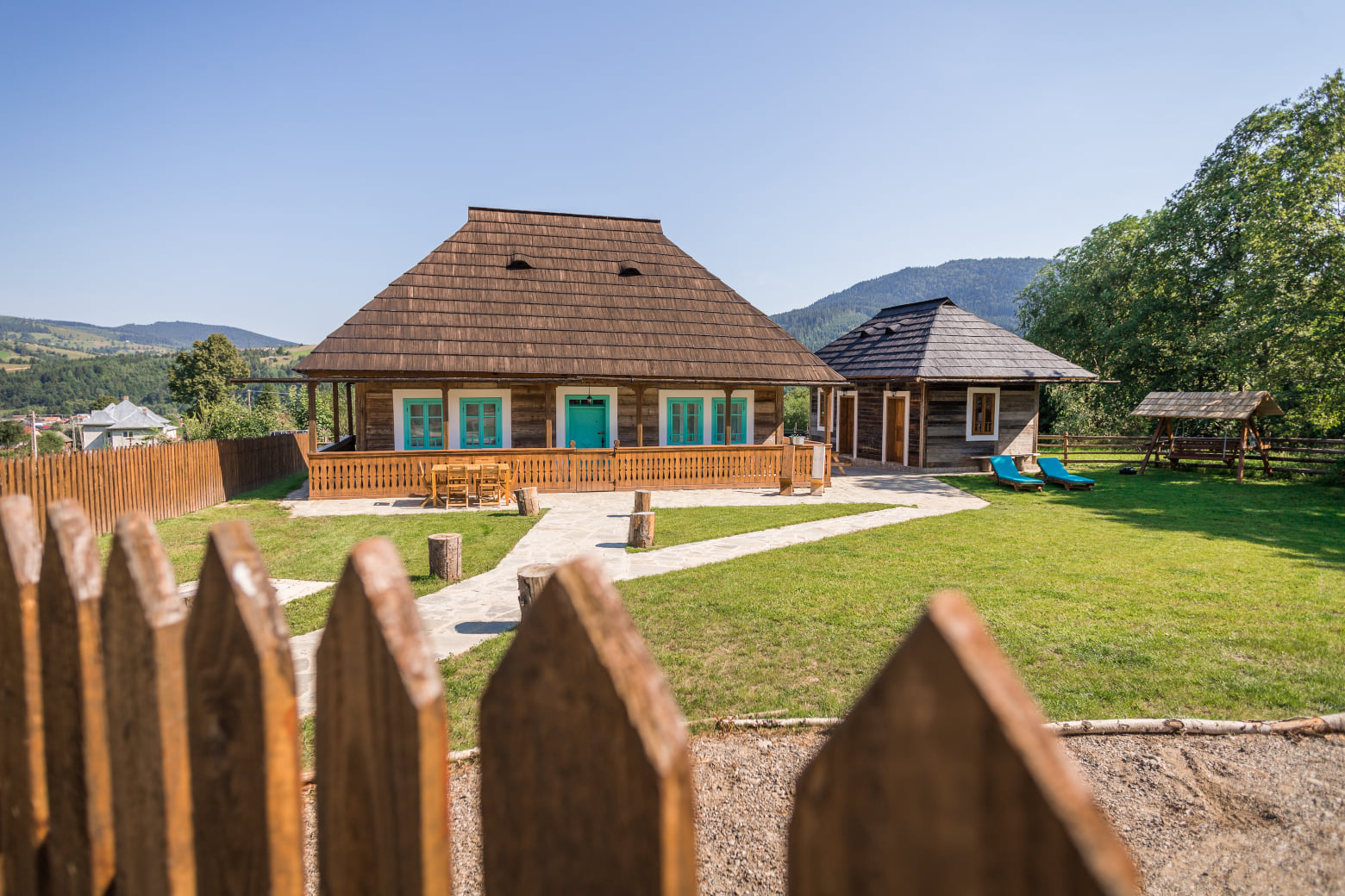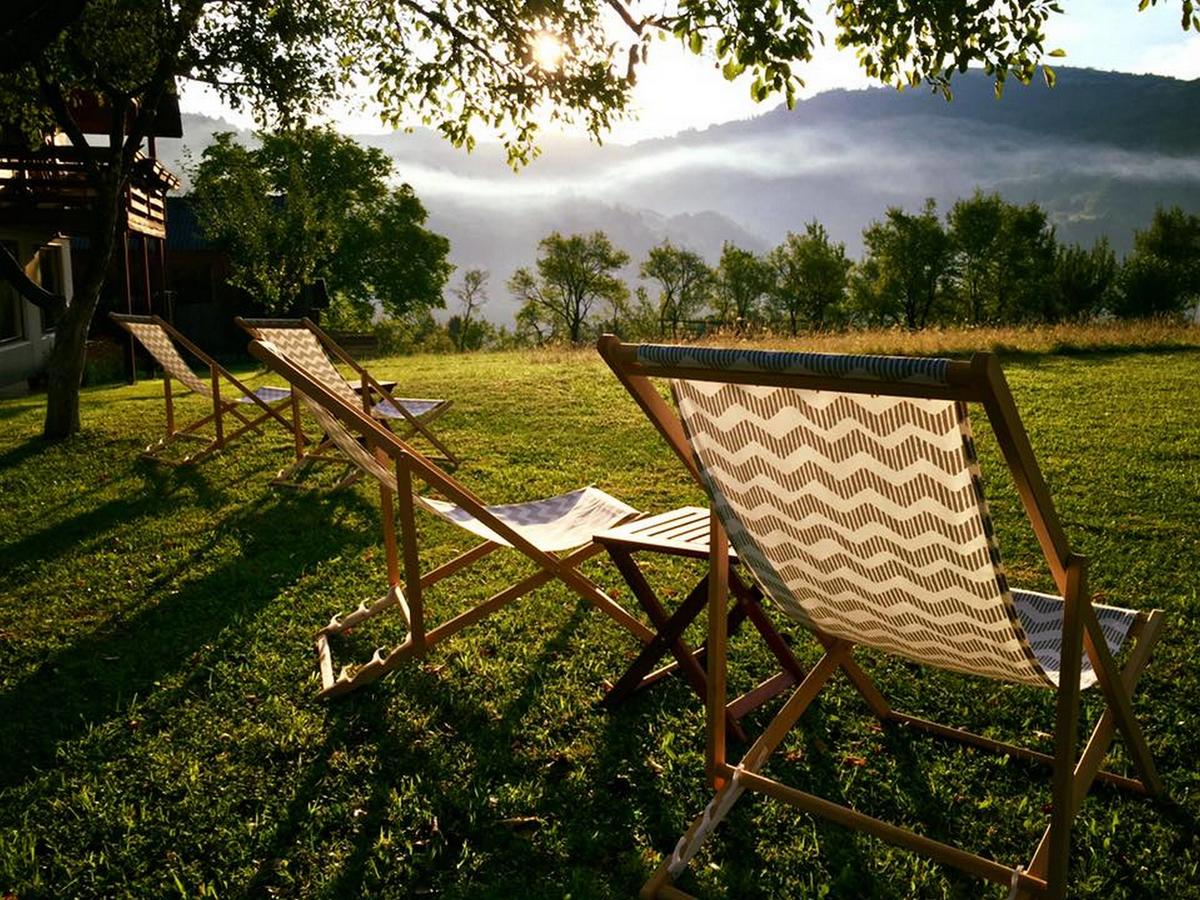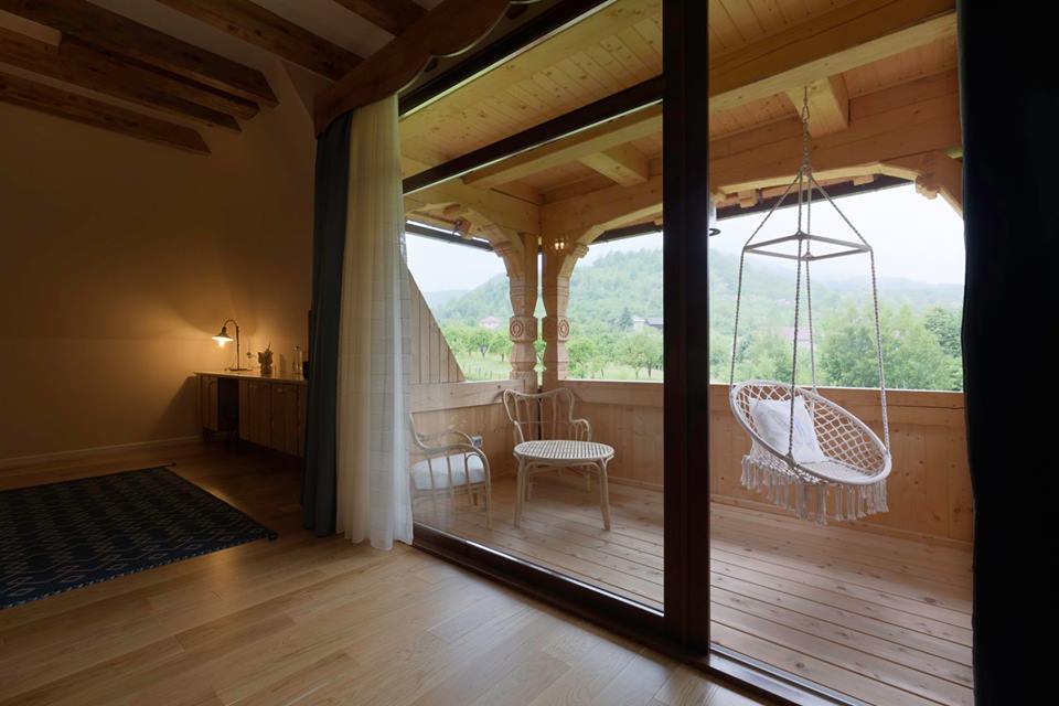 De la ferestrele odăilor vei fi răsplătit cu o priveliște de vis asupra pădurii ce înconjoară falnic Vatra, iar de pe verandă vei putea ședea într-un leagăn și privi iazul și căsuțele tradiționale.