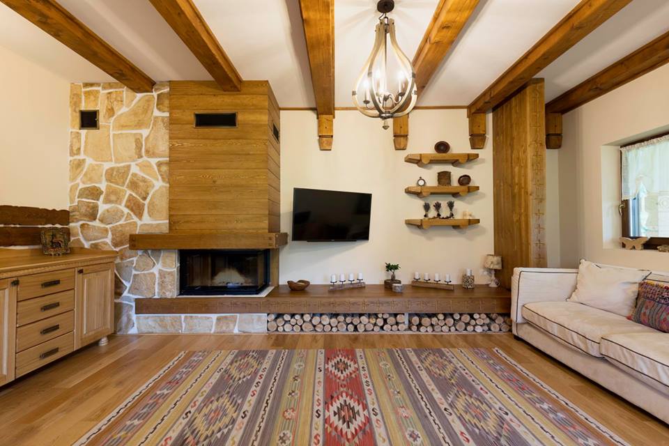 - living cozy cu semineu pe lemne;