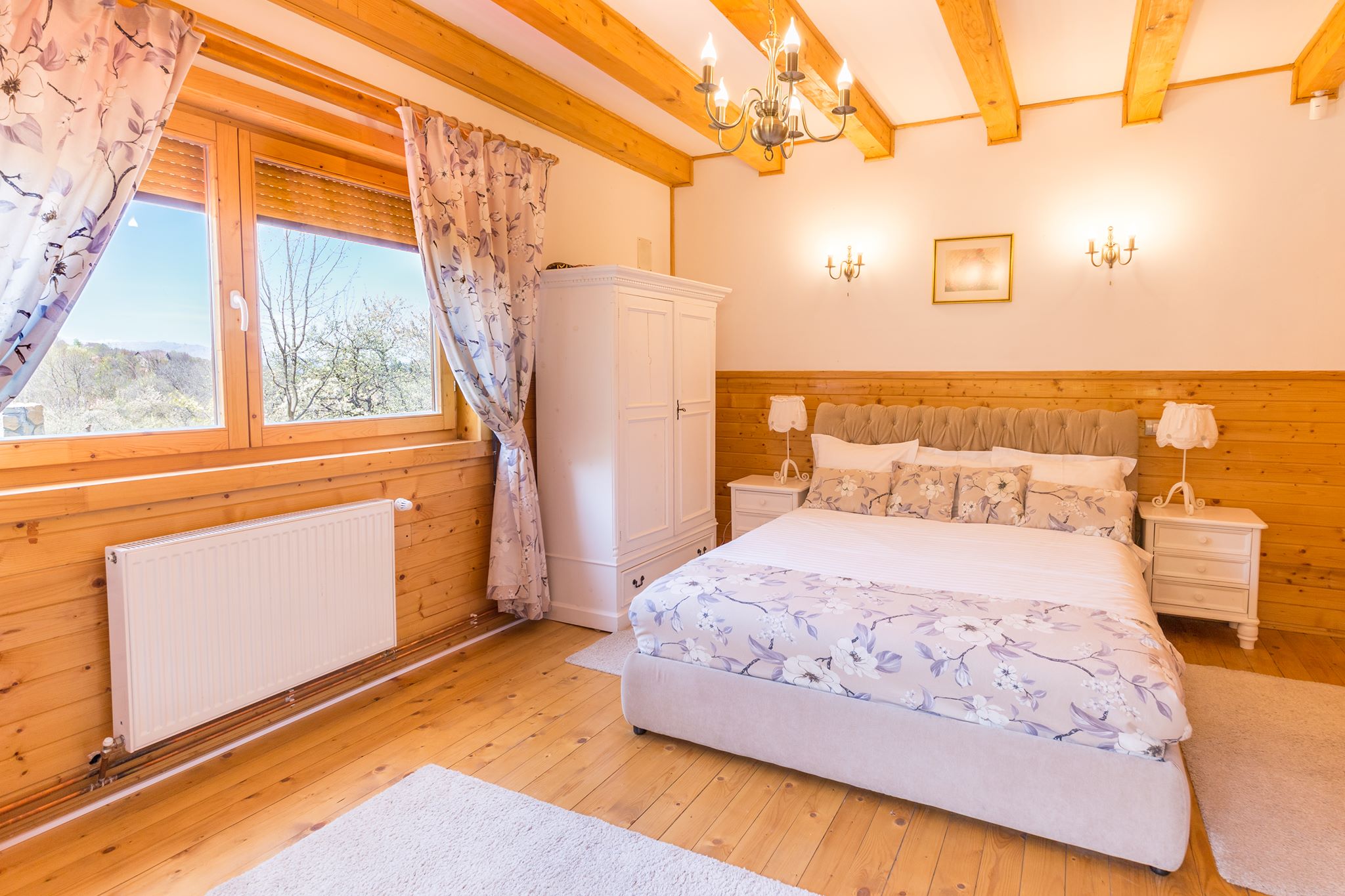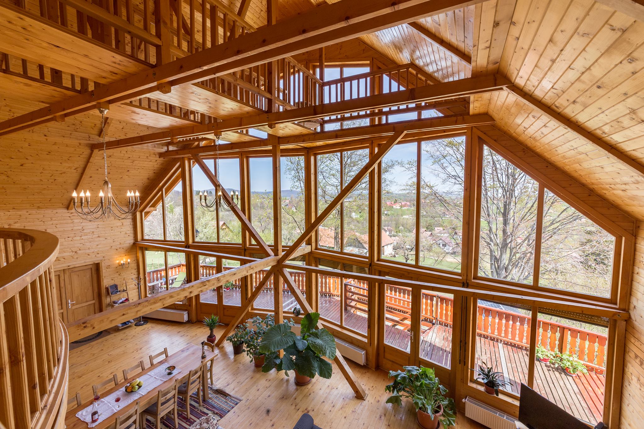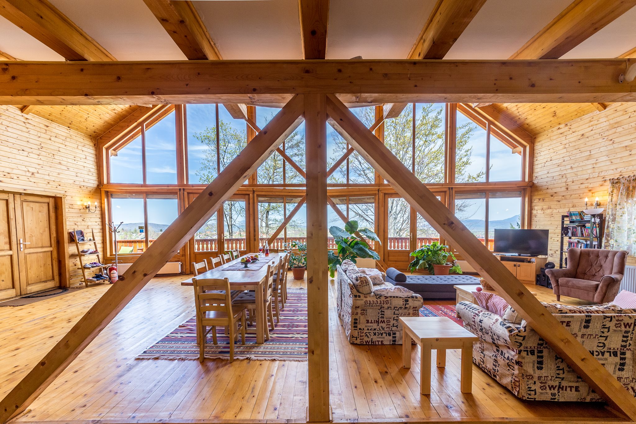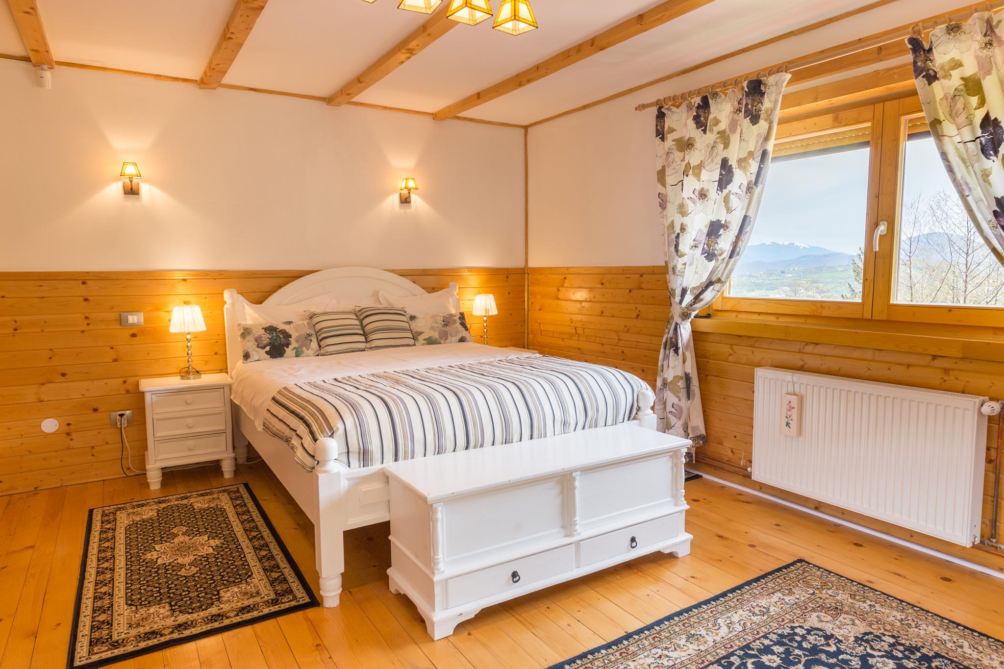 Apusul s-a lăsat peste crestele falnice. Fiecare cabană de la Carpathian Log Home ademenește călătorii la somn, dar parcă ați mai sta la povești, așa-i? Aveți și unde, pe terasă ori în living-ul cu priveliste panoramica.