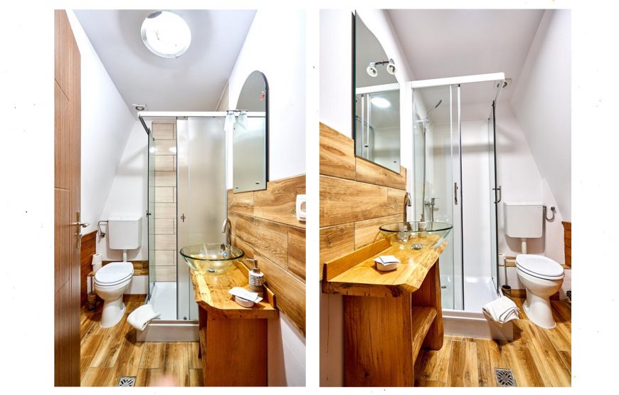Fiecare cameră are o baie privată, oferind facilitățile unui trai modern.