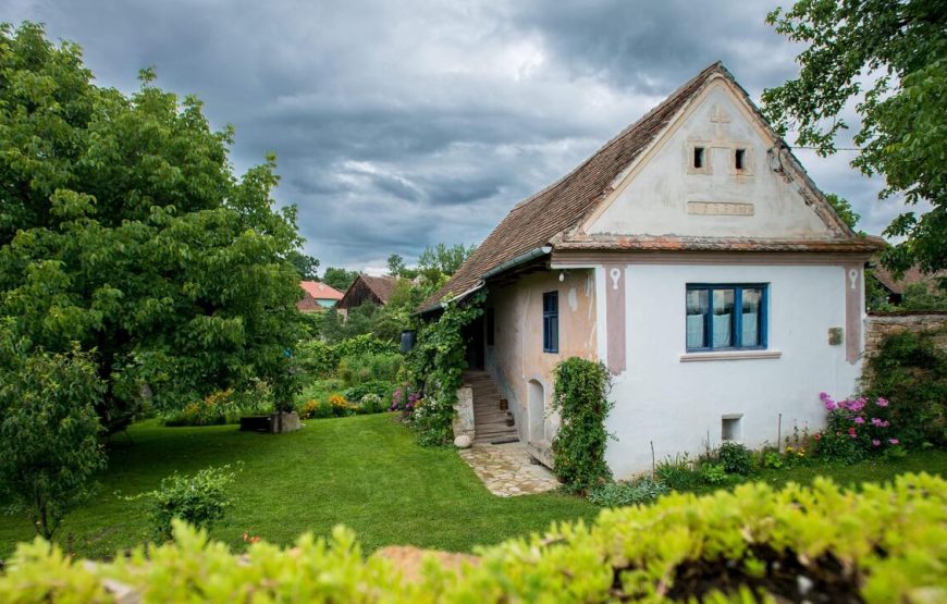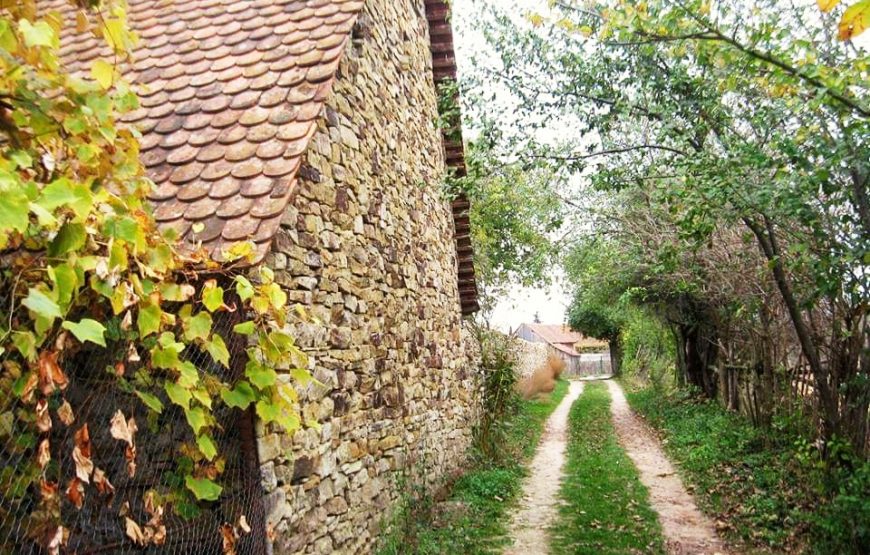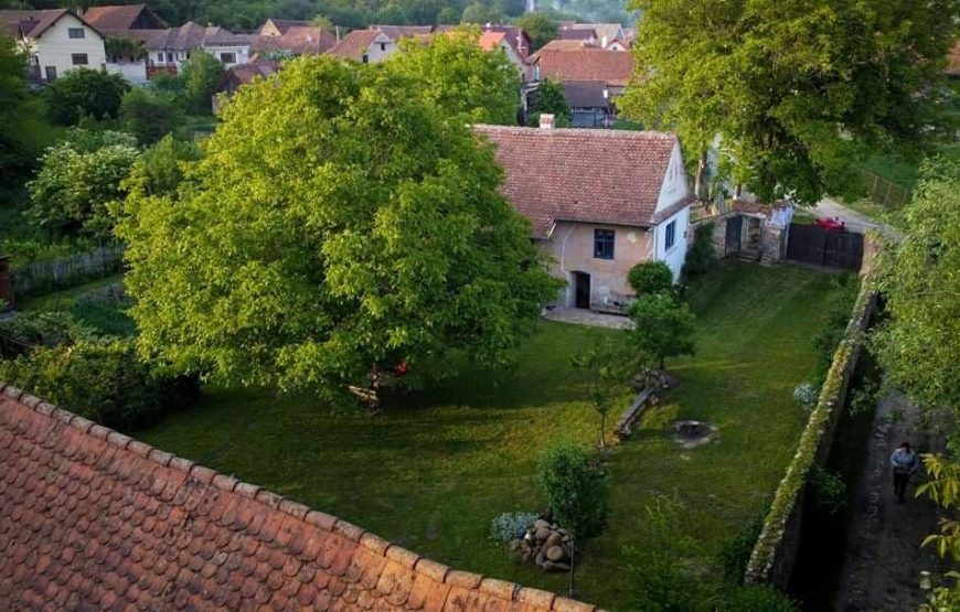 Mergem pe un drum pustiu, iar în ecou se aude Oltul misterios. Departe de zgomotul orașului, intrăm în Șona, văcuțele pe drum – în loc de mașini, haha… pe stânga și dreapta drumului câteva case săsești, iar noi continuăm să mergem după GPS. Ajungem la un gard din lemn și zărim ziduri din piatră, intrăm pe poartă și o grădină cu parfum de fructe și legume ne arată drumul spre casa veche de peste 100 de ani.
