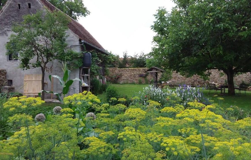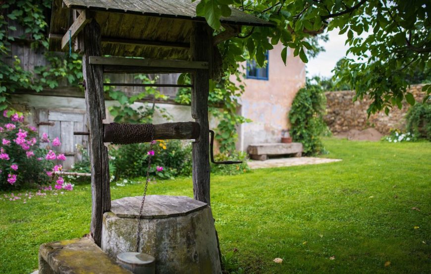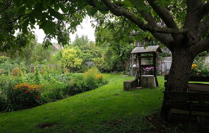 În grădina inundată de fructe și legume, pe care le puteți culege pentru a pregăti bunătăți, se află o fântână, izvorul vieții cum spun miturile. Așadar, puteți să simțiți cum de aici începe izvorul vostru de liniște. Stați pe prispă, pe bancă sau pe iarbă și admirați natura.