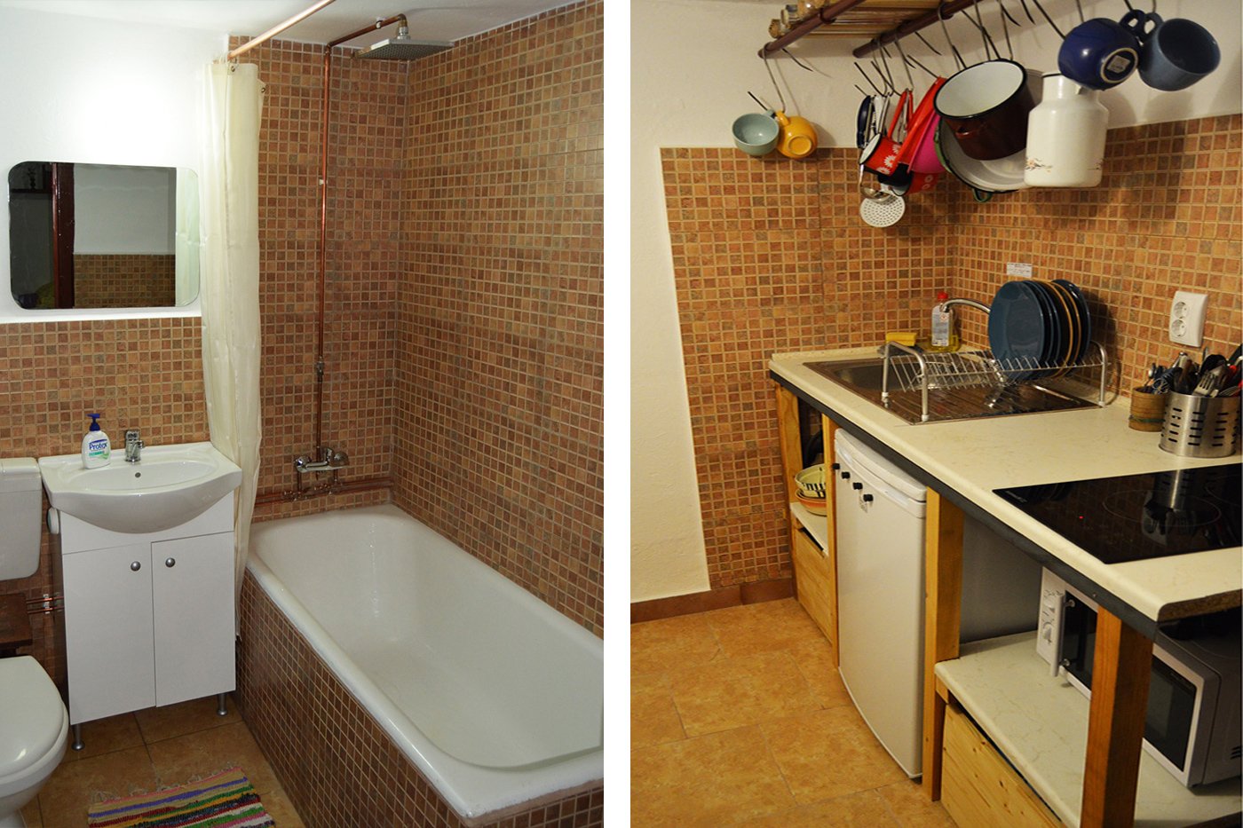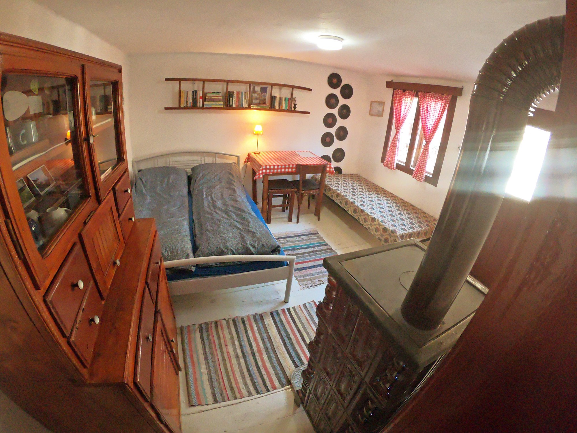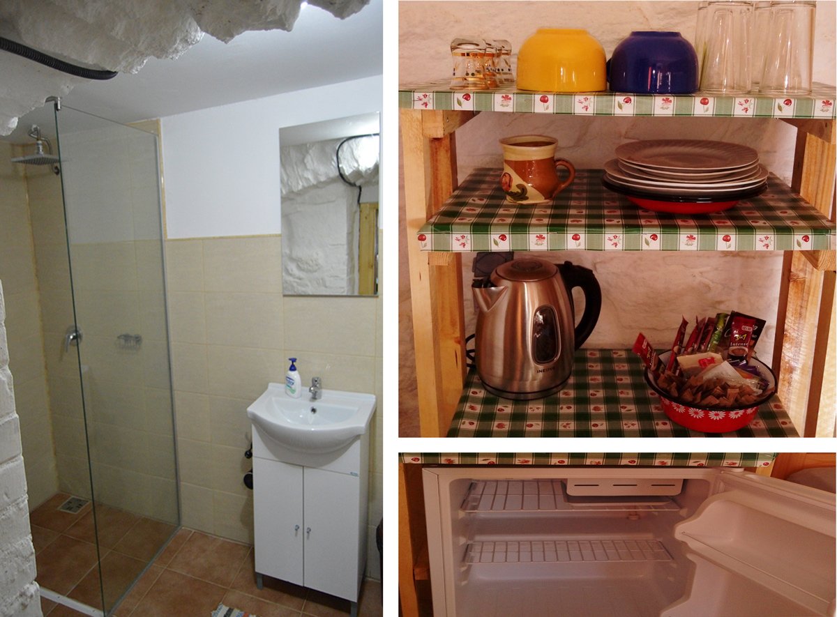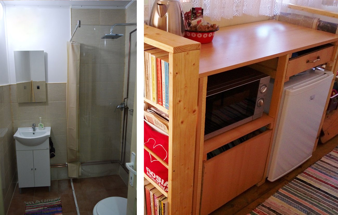 Din camera se intra direct în baie sau bucatarie, iar incalzirea este asigurata de o teracota pe lemne, ca pe vremuri. De asemenea, se bucura de baie privata si bucatarie, dotata cu aparat de cafea, frigider, plita, chiuveta, cuptor cu microunde, tacamuri si vesela.