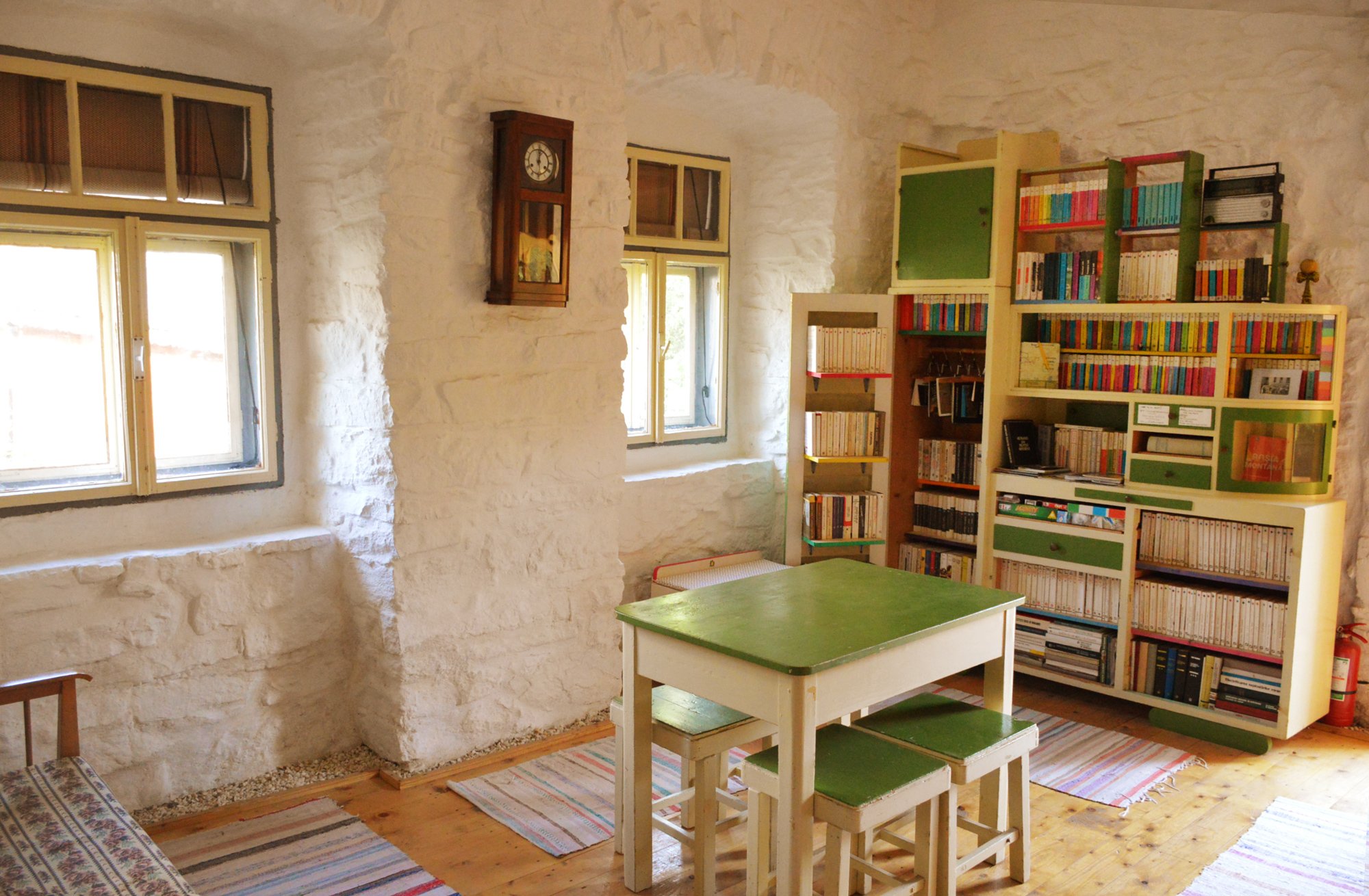 Poarta numele acesta intrucat se bucura de o bogata biblioteca, impodobita cu vechile carti ale bunicilor, ghiduri despre Rosia Montana si board games.