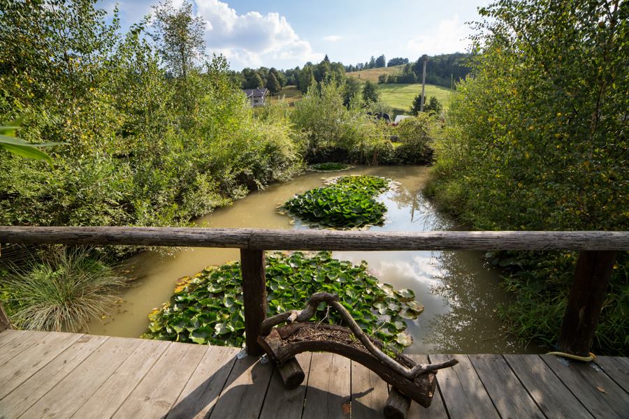 Camerele păstrează aceeași linie a mobilierului pictat manual, a pereților cufundați în stinghii din lemn și a varului alb. Iubitorii de pescuit vor găsi la Pensiunea Muzeu Casa Poveste un iaz plin cu crapi și carași.