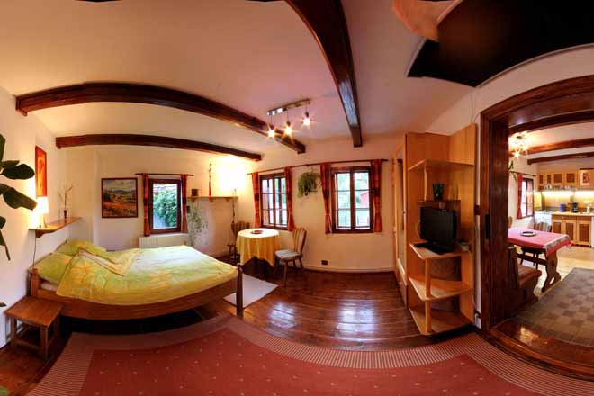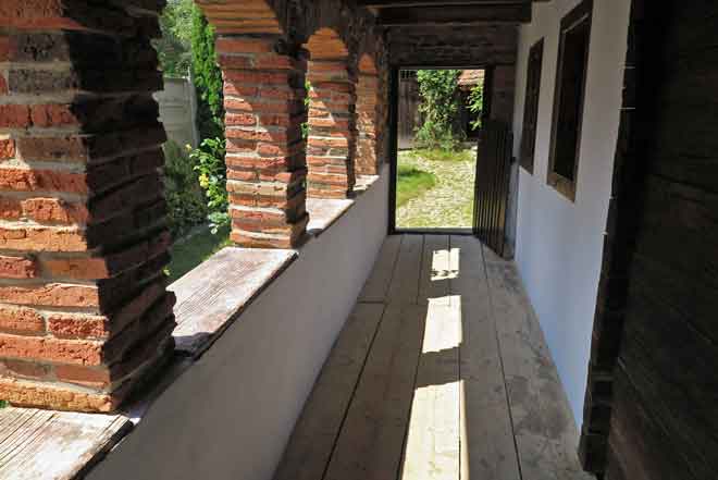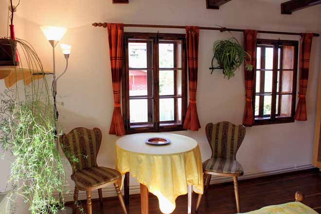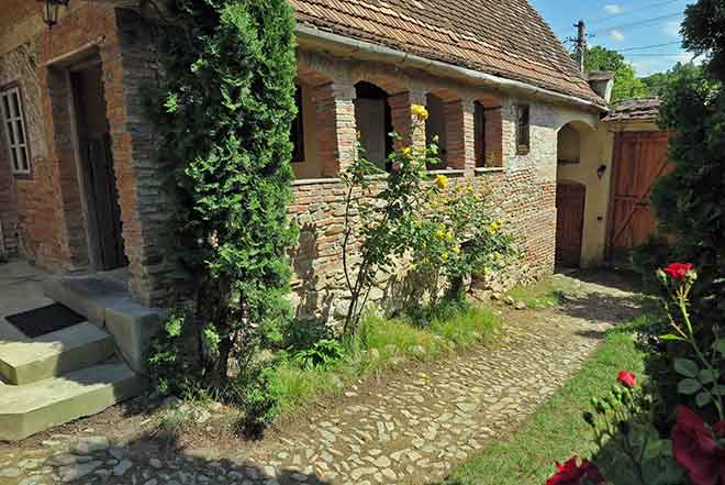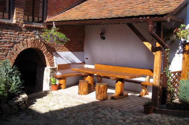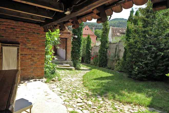 Curtea interioara este o adevarata desfatare pentru ochi, indiferent de anotimp. Aici va veti putea relaxa pe o alta terasa acoperita, in fata unui pahar de vin sau a cartii preferate. Iar daca sunteti iubitori de natura si drumetii, o puteti lua usurel pe langa biserica si veti urca pe versantul de deasupra satului, care ofera privelisti uimitoare asupra livezilor montane, imprejmuite de o padure batrana de foioase si conifere.