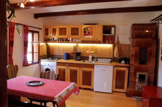 Va puteti caza in aceasta casa traditionala din Marginimea Sibiului pe tot parcursul anului intrucat este echipata cu centrala termica pe gaz. Daca doriti ca experienta sa fie complet rustica, veti putea face focul in soba de teracota care va furniza, de asemenea, caldura in toate caloriferele.
