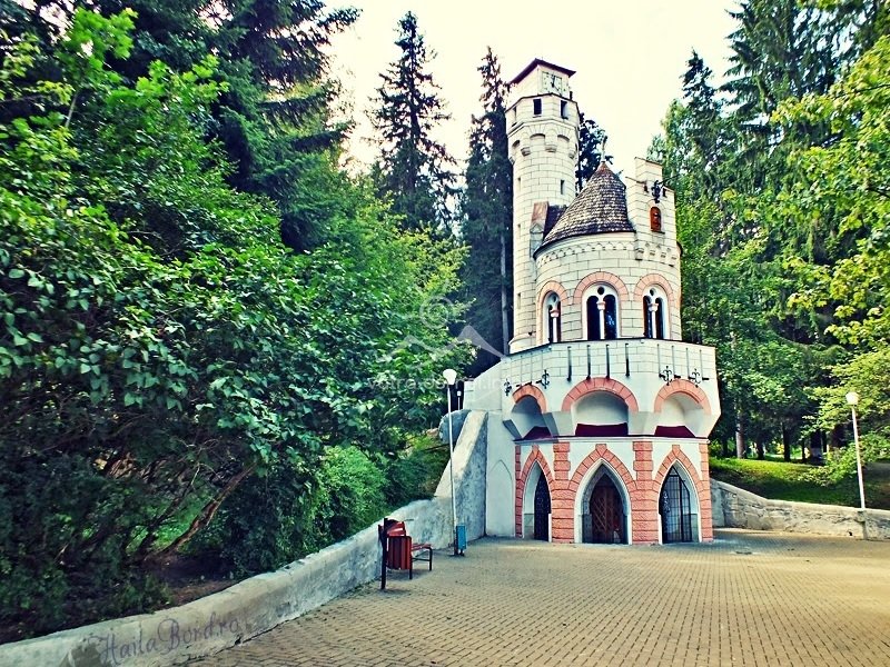Am rămas prinși în regat, în Parcul Central din stațiune. Mergem spre castelul medieval să îi aflăm povestea. În jurul anului 1871 a fost descoperit un izvor cu proprietăți curative, Izvorul Sentinela. În anul 1896, pe acel loc s-a clădit un edificiu în stilul castelelor medievale.