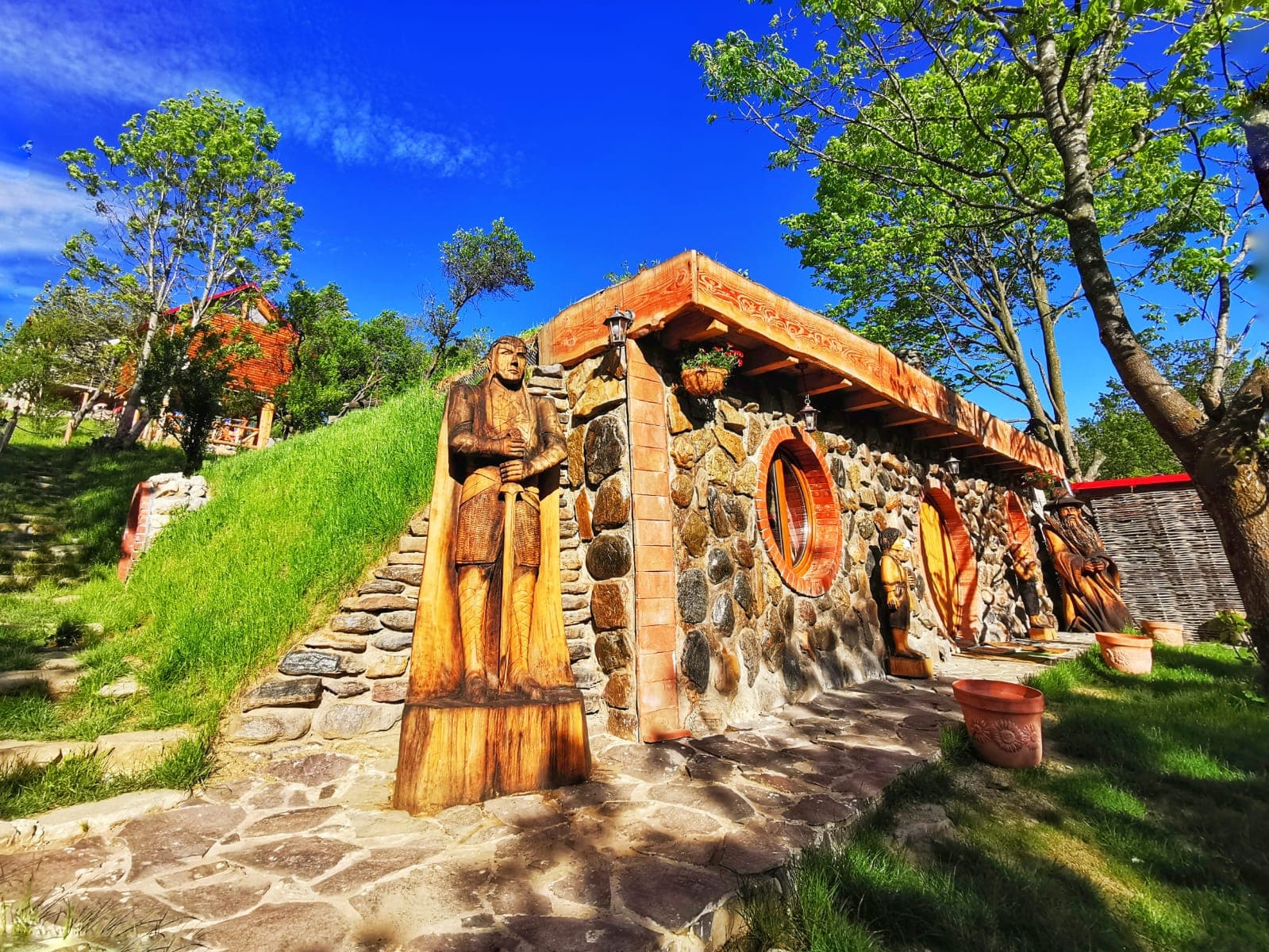 Relaxarea, drumeția prin munte, peisajele pitorești, aerul revigorant sunt lăsate o bucată de timp deoparte, pentru că urmează noaptea, iar somnul strigă călătorii spre case. Sunteți chemați într-o poveste, la Căsuța Hobbit. O căsuță joasă, cu pereți din piatră, cu Gandalff și alte personaje din Hobbit care așteaptă să vă cunoască.