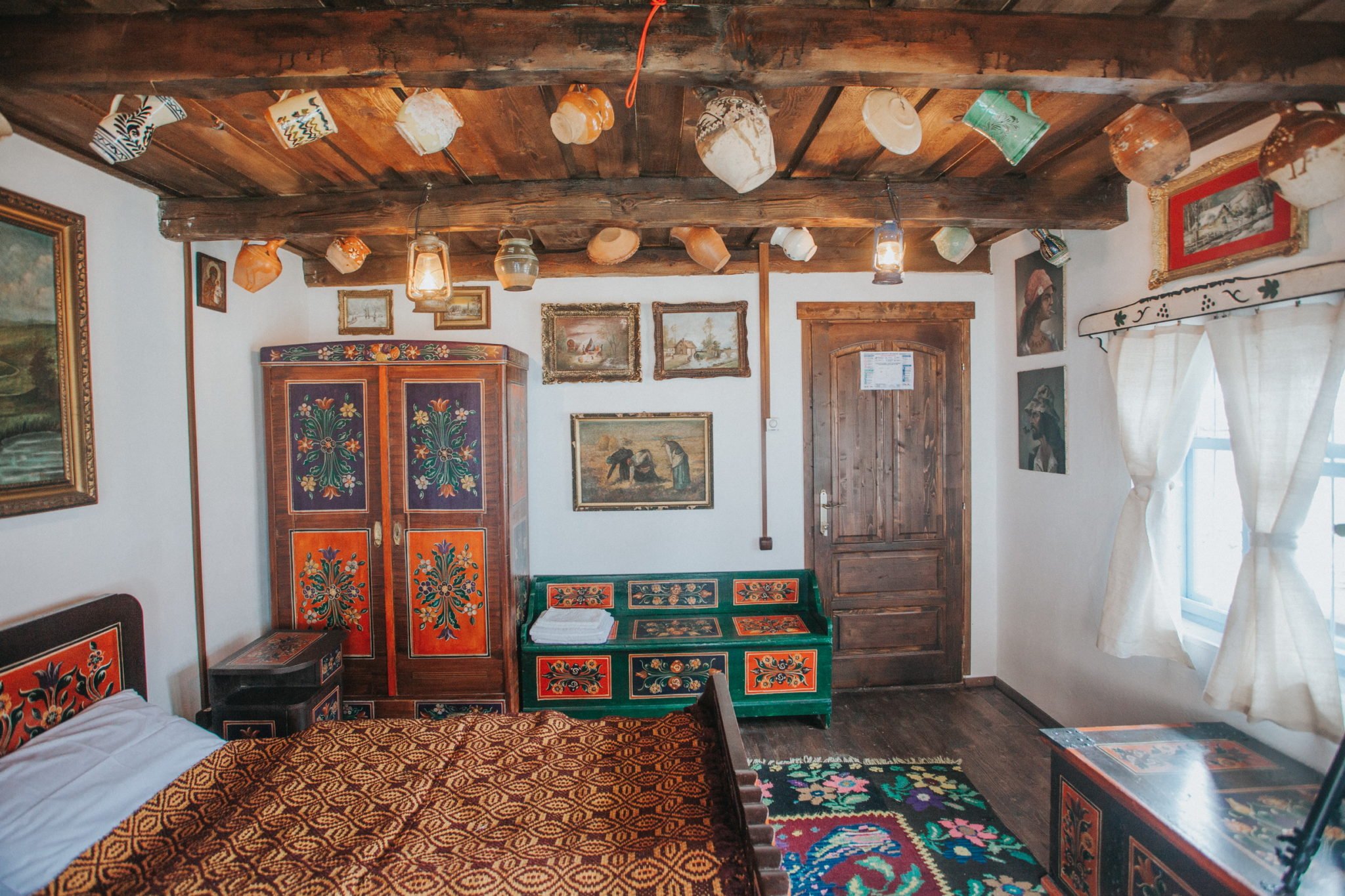 La Gospodaria lui Nea’ Ion timpul pare ca s-a oprit in loc, aproape niciun obiect nefiind ancorat in era actuala. Mobilierul arhaic, decorat cu obiecte de antichitate, covoarele taranesti, tesaturile vechi si costumele populare te transpun direct in filmul Amintiri din copilarie (pe care il puteti viziona online pe setiunea de blog, in format HD).