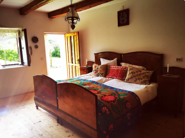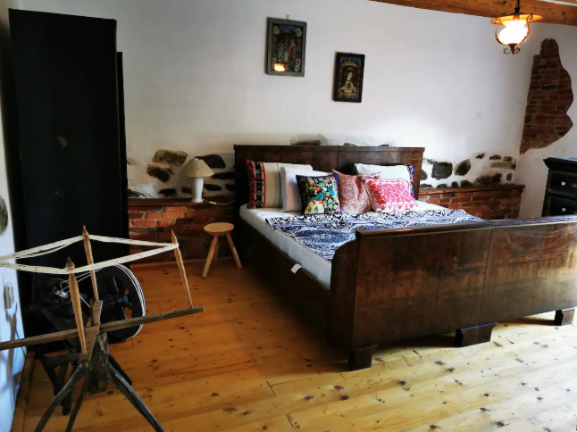 Dormitorul bucură drumeții prin piese de mobilier din lemn, așternuturi tradiționale cusute manual ce spun câte o poveste. Încăperea cuprinde o baie privată.