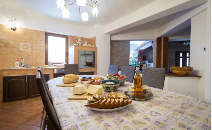 Oaspeții se pot delecta cu preparate culinare rafinate, gătite chiar de ei, cu ajutorul ingredientelor procurate de la localnici sau de la buticurile din Săliște. Daca preferati aceasta varianta, se poate oferi si catering la locatie.