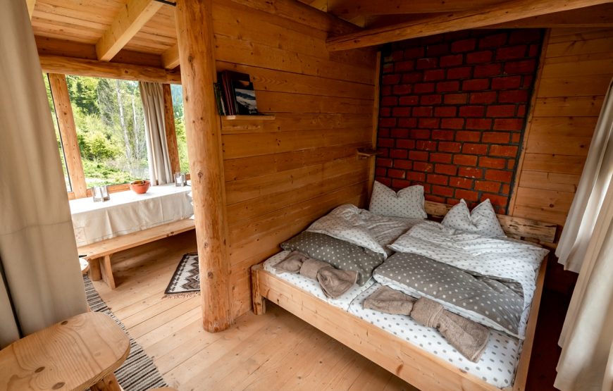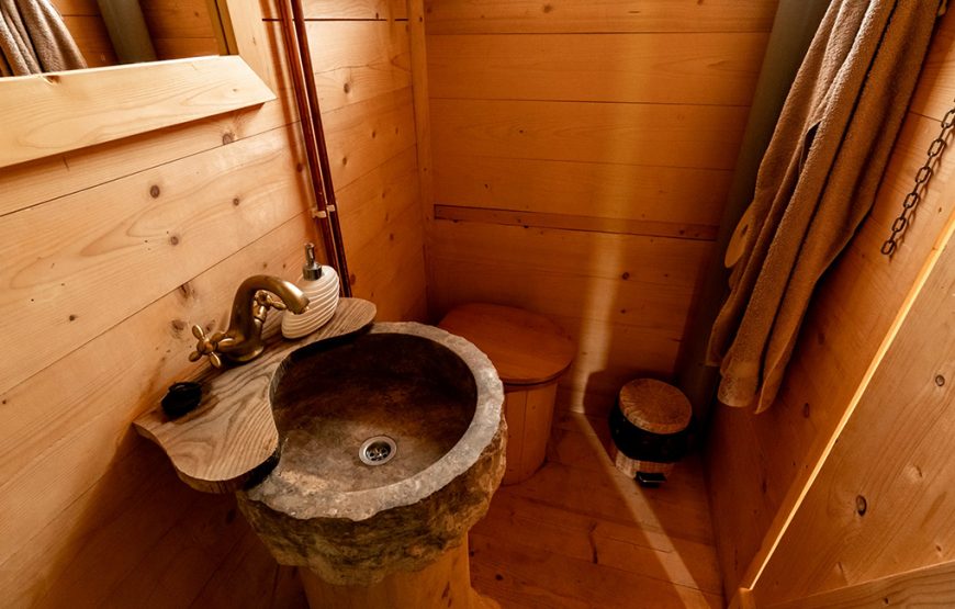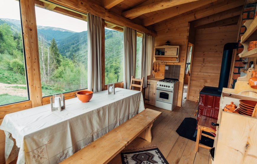 Fiecare cabană vă oferă confortul mult visat: paturi odihnitoare; grup sanitar rustic; geamuri panoramice de unde să admirați fauna, flora și cerul; sobă și șemineu ideale pentru nopțile răcoroase și mâncăruri delicioase realizate din ingrediente locale.