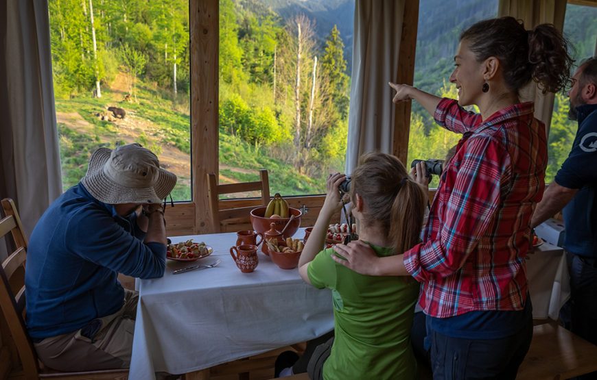 Ce să faceți? Să vă relaxați, să ascultați poveștile ghidului despre natură și conservare, să priviți din cabană fauna în splendoarea sa: păsări, urși, mistreți, cerbi, vulpi, căprioare, zimbri.