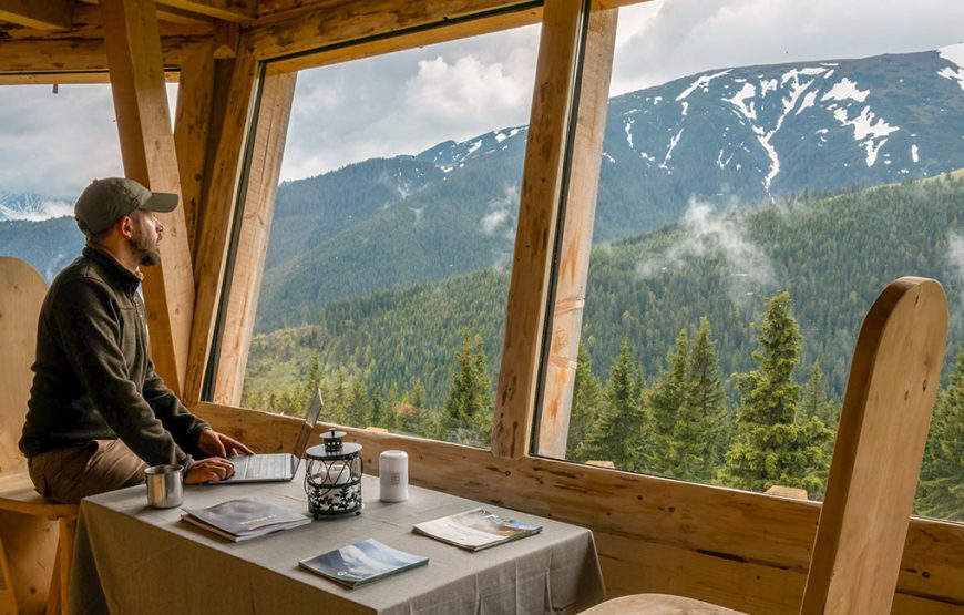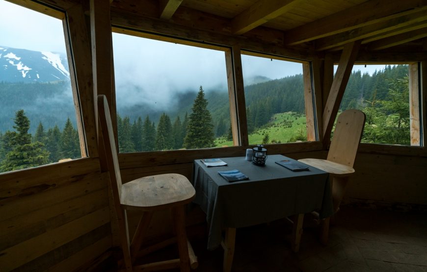 Oaspetii au posibilitatea sa aleaga intre o experienta relaxanta, confortabila, premium la cabana Bunea (15-20 min de mers pe jos) sau o experienta plina de adrenalina, energie si aventura la observatorul Comisu (1.5-2 h de mers pe jos).