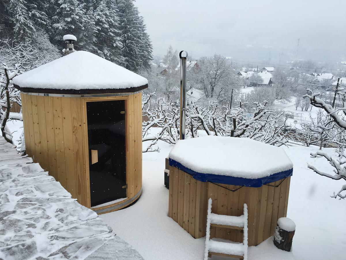 Experienta de vis are loc în ciubărul și sauna de afară, de unde se privesc cele mai frumoase răsărituri și apusuri.