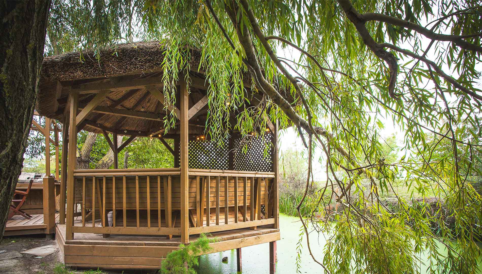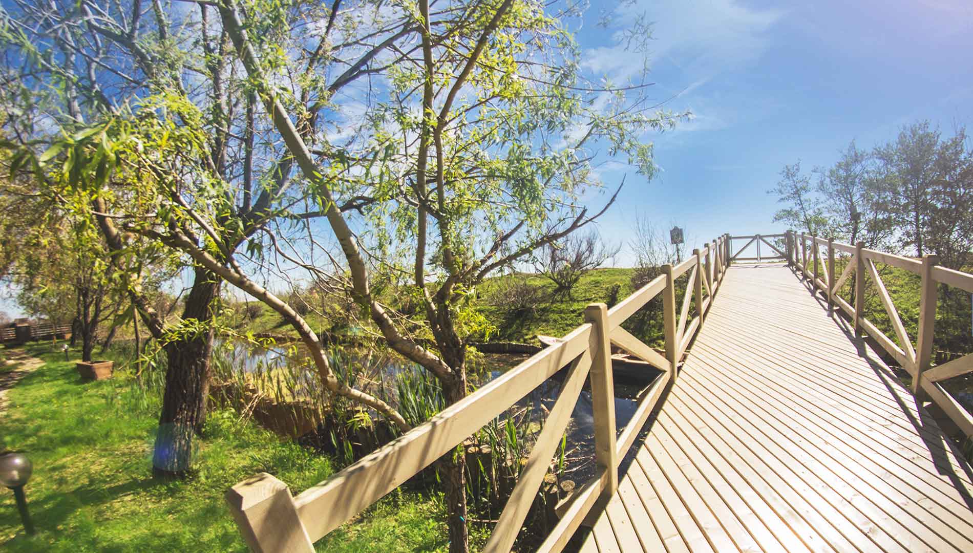 Din loc in loc, se mai zareste cate o bancuta din lemn pe care te poti aseza pentru a privi frumusetea biodiversitatii oferite de canalele Dunarii, ce marginesc resortul. In aceasta zona va puteti caza in camere duble si apartamente de doua sau trei camere.