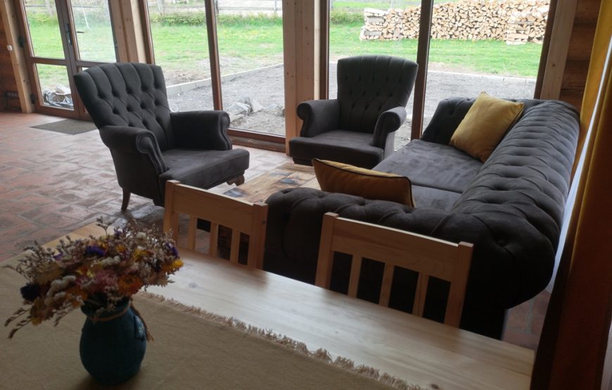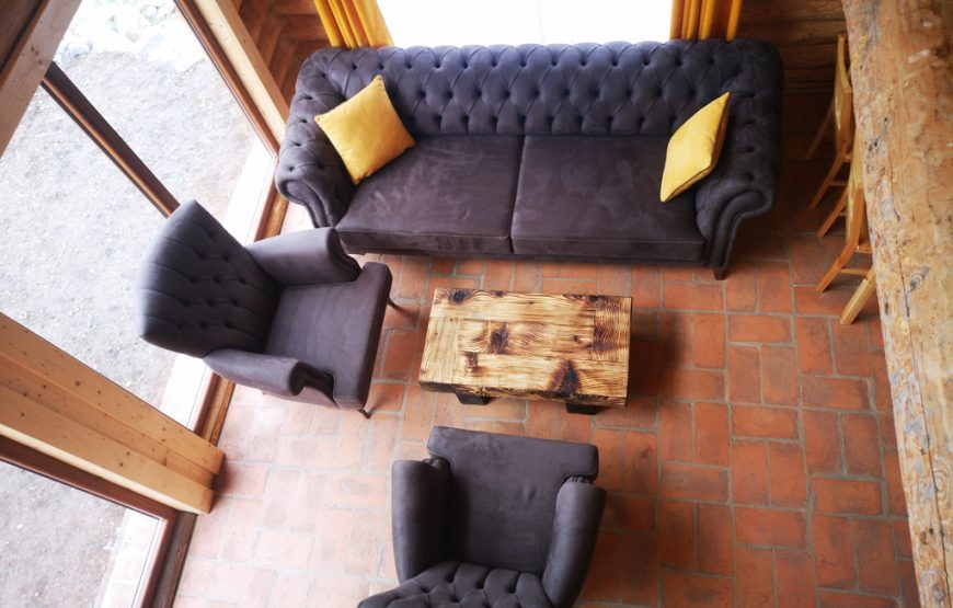 Cabana montană este construită din materiale ecologice – lemn și cărămidă – vechi, adunate de prin cotloanele satelor brănene. Frumusețea sa te farmecă încă de la prima vedere. Pozele vorbesc despre dragostea și conexiunea om – natură, iar aici doar despre acestea este vorba.