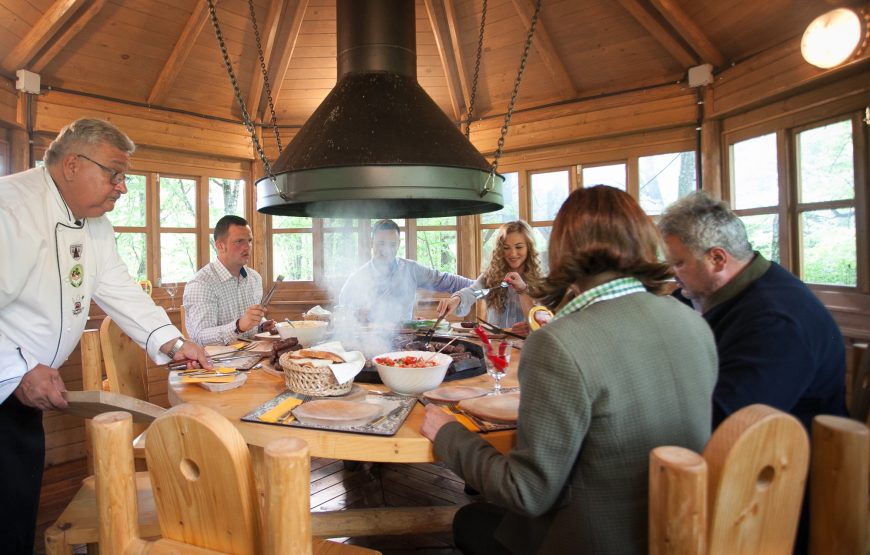 Atâtea încercări v-au făcut poftă de mâncare și e chiar ora prânzului. În grădina cufundată în pădure, într-o terasă acoperită, aveți la dispoziție grătar ca să pregătiți după bunul plac păstrăvii.
