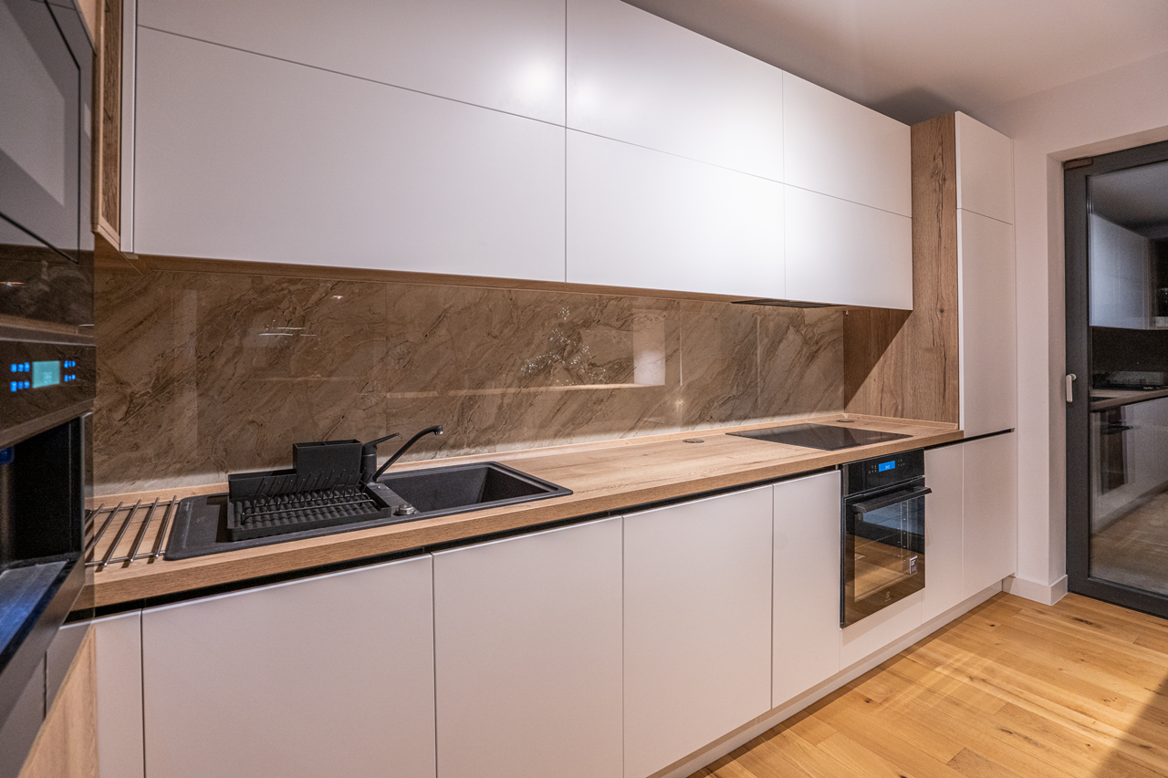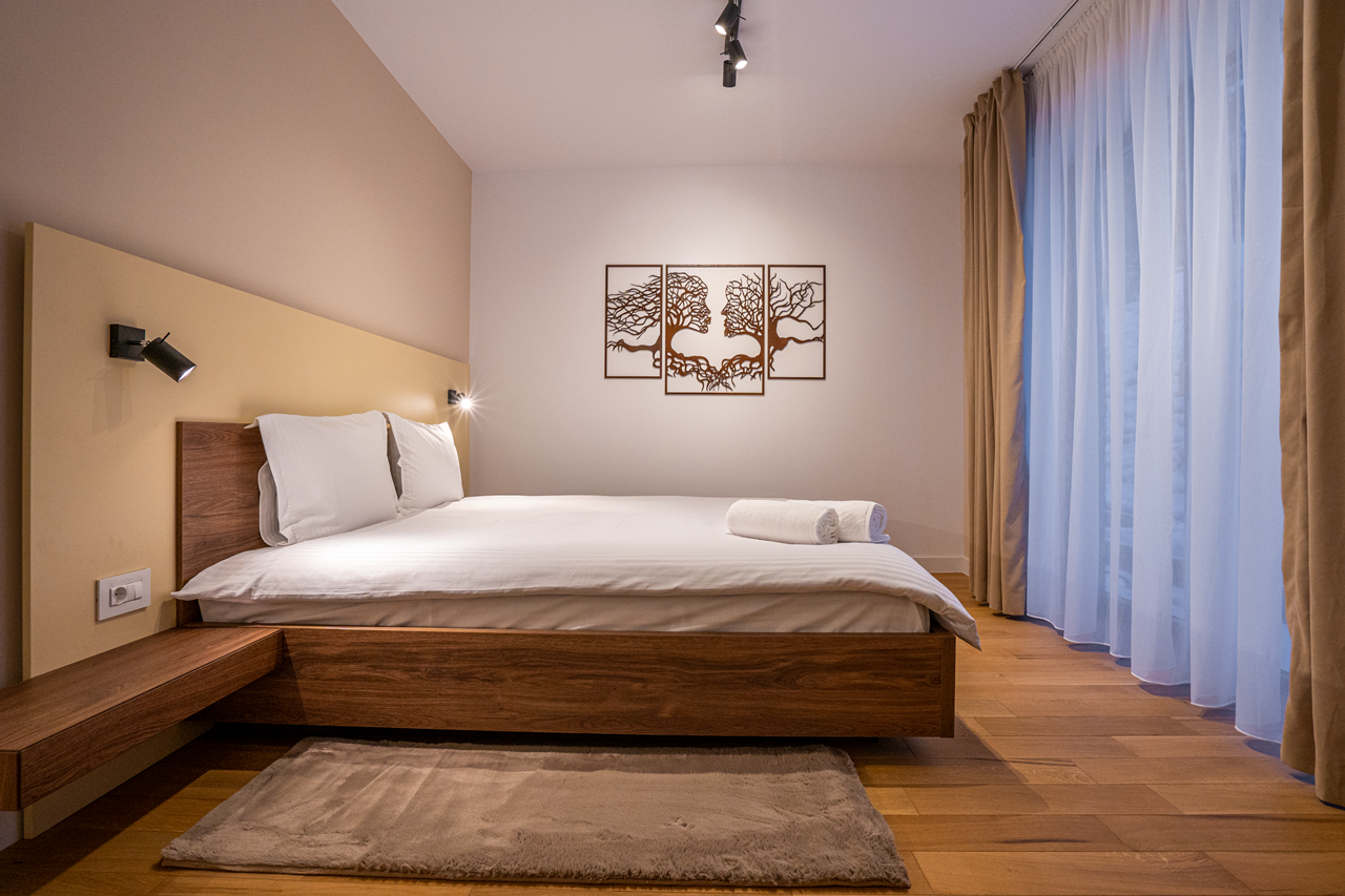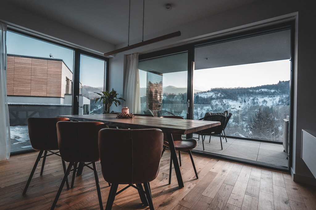 Este vorba despre un penthouse compus din doua dormitoare, living, dining, bucatarie, doua bai si terase spatioase. Suprafetele vitrate supra-dimensionate dezvaluie peisaje care iti taie rasuflarea, indiferent de anotimp.