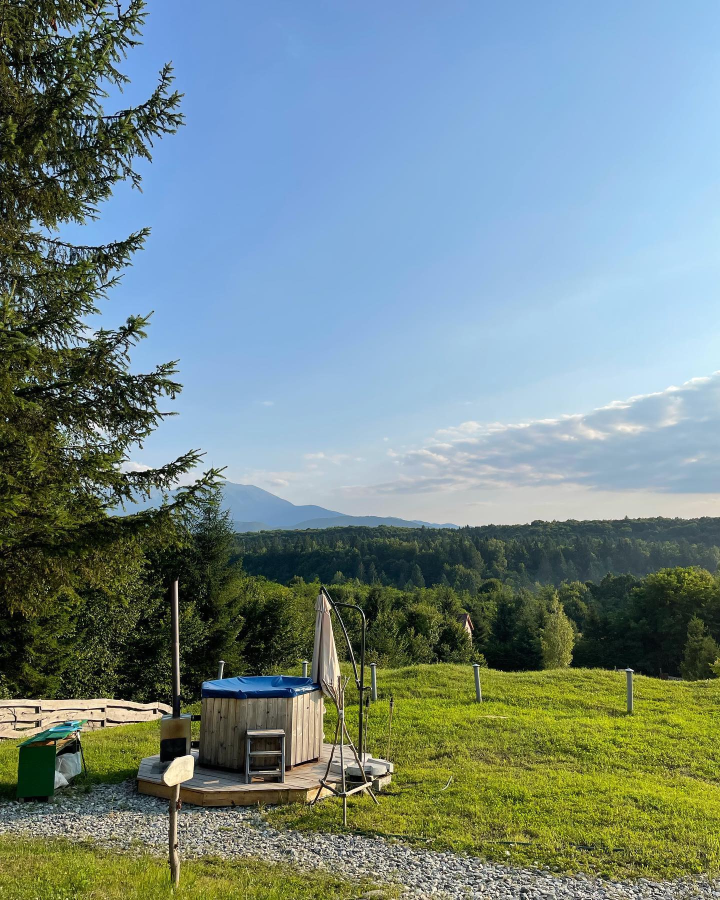 Pe timp de vară există și un cinema în aer liber pus la dispoziția celor care se hotărăsc să treacă pragul Pensiunii Dealul Verde.