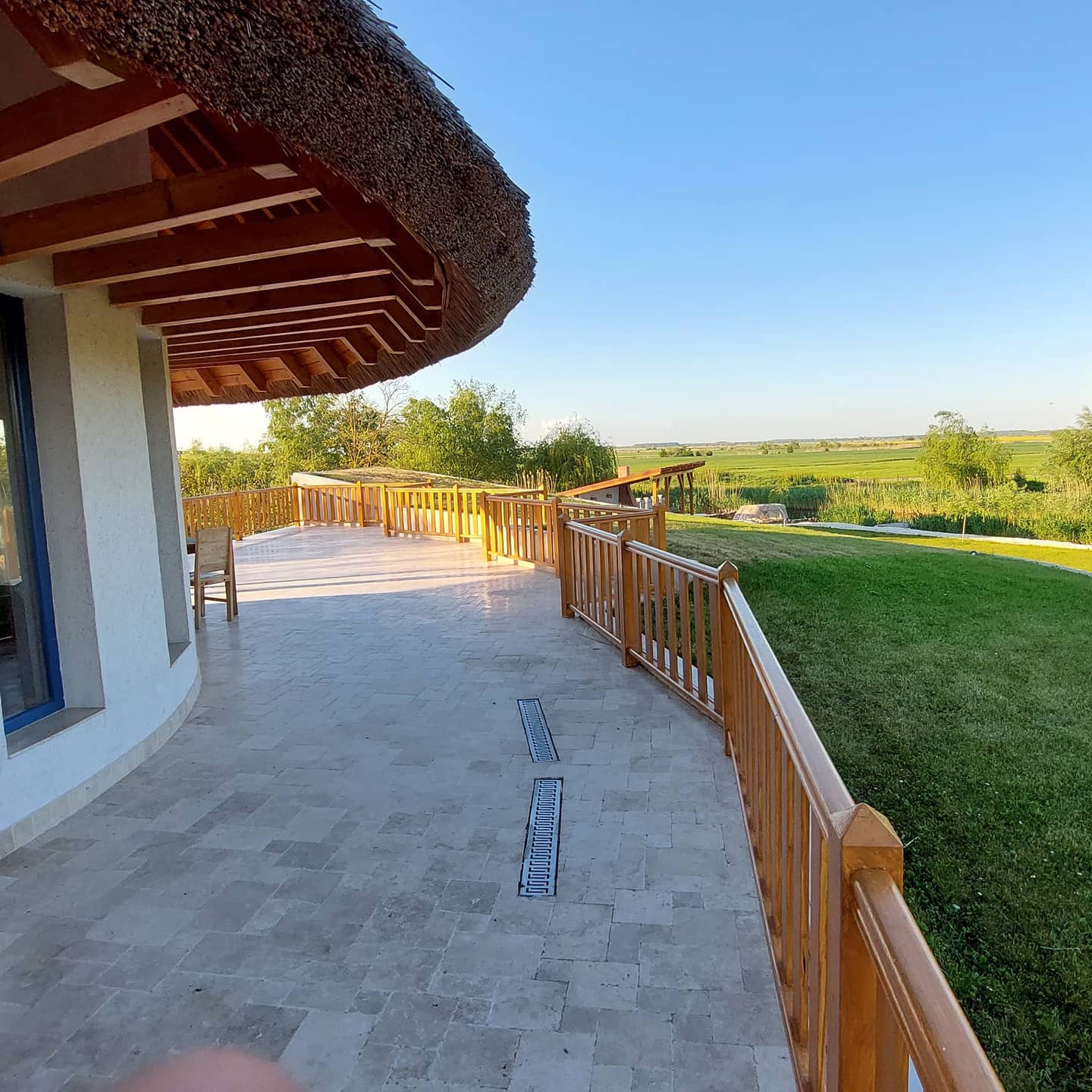 La exterior, locația dispune de o curte imensă cu deschidere la canalele sălbatice ale Deltei. Aici vei găsi caiace pe care le poți folosi pentru a explora zona, bucurându-te de liniște și biodiversitate.