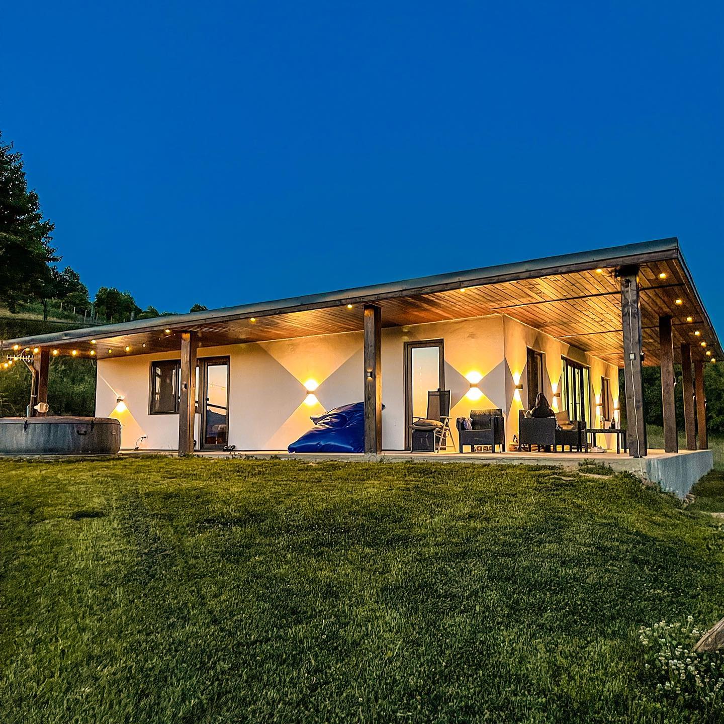 Dacă vrei un plus de relaxare, proprietatea pune la dispoziție și un jacuzzi. De asemenea, cabana are și o terasă, o zonă special amenajată pentru grătar și ceaun, un leagăn și un pat cu plasă care îți oferă o priveliște spectaculoasă.