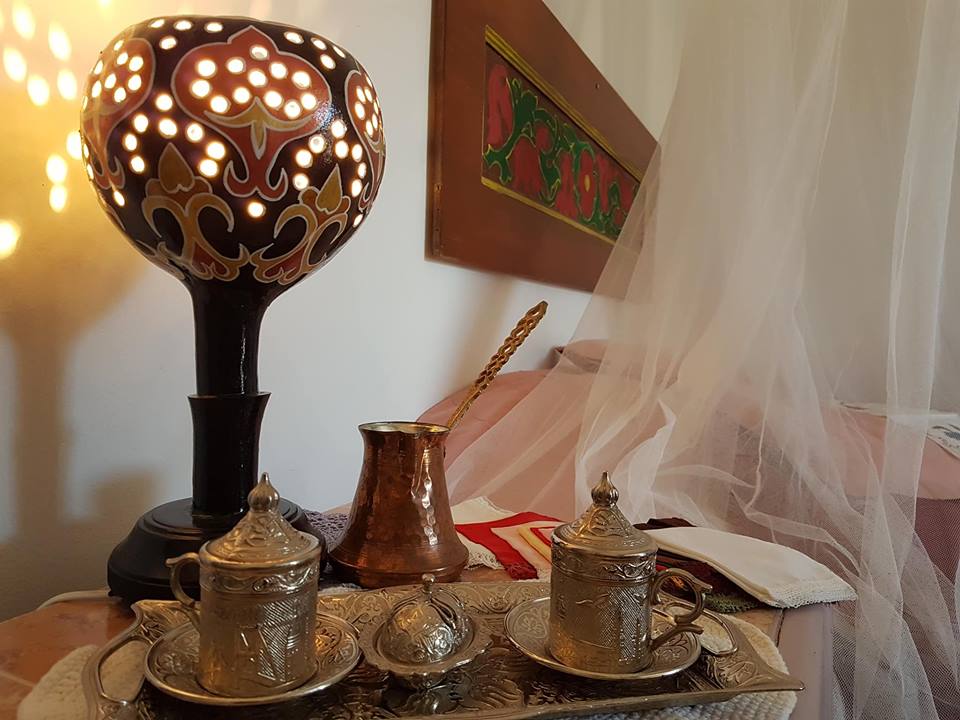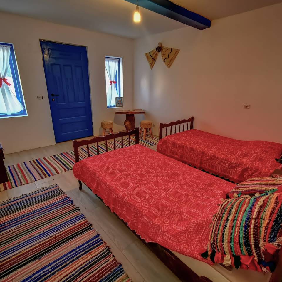 Camerele sunt simple, pictate cu un alb ce denotă liniște. Stergarele vechi, covoarele țesute, cuverturile din lână, un mic butoi din lemn plin cu secrete contureză imaginea camerei românești. Mergem și simțim miros de cafea turcească, privim patul cu baldachin și ne relaxăm în amiază la un sorbet. Toate camerele spun câte o poveste. Veniți să o ascultați!