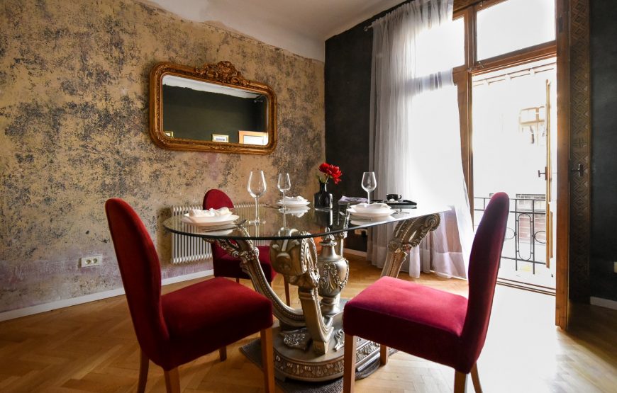 Ați decis să lăsați agitația și stresul deoparte și departe, astfel că intrați într-un portal al timpului și ajungeți la Baroque Apartament, un spațiu cu un design elegant și o terasă spațioasă, de unde să admirați superbul București.