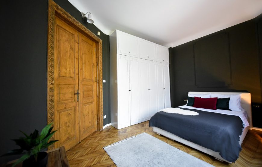 Îmbinat cu modernul și inspirat din stilul brâncovenesc, cu note sobre și simțiri ca la muzeu, Brancovian Apartment este ideal pentru un grup mic de prieteni cu care vreți să descoperiți Bucureștiul.