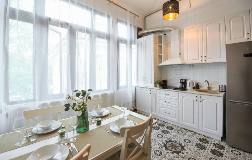 La prima impresie Charming 1BR oferă senzația întoarcerii în timp datorită structurii și elementelor din lemn care amintesc de multe filme românești. Apoi, cufundate prin ele se află și elementele moderne, care vă trezesc din nostalgie și care contribuie la confortul contemporan.