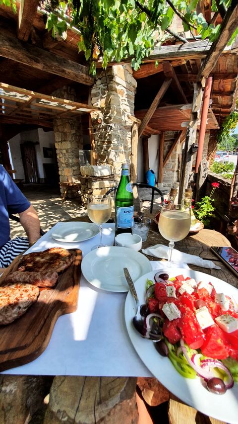 Noi am descoperit un astfel de ‘punct gastronomic local’ chiar peste drum de Hotelul Sevastokrator. Nu era marcat în niciun fel stradal, dar am văzut o masă faină, la umbră și pe cineva în interior. Am întrebat dacă ne pot recomanda un restaurant cu mâncare locală și ne-au invitat la masă.