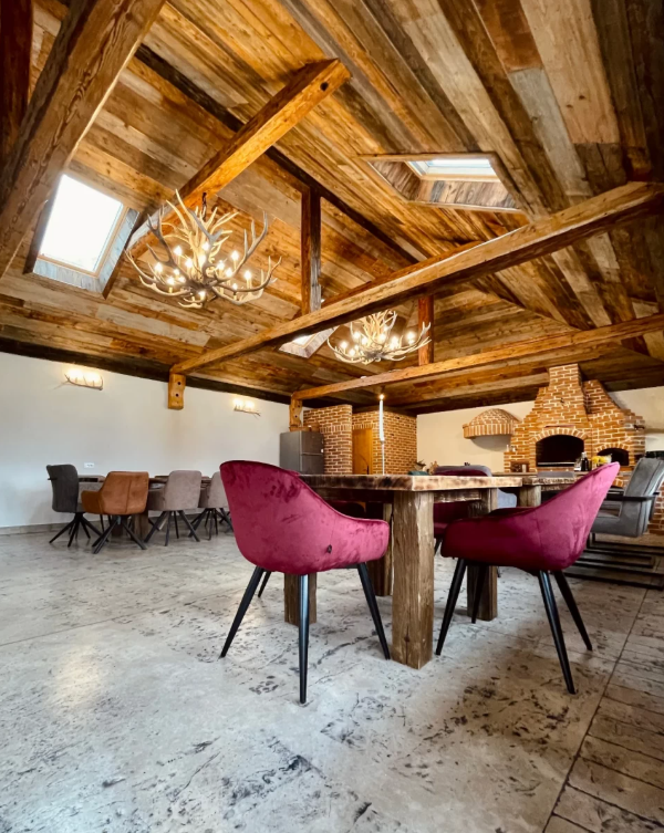 Loft Chalet este o cabană de lux, cu linii rustice împletite cu cele moderne. Dispune de confort premium în 5 dormitoare cu băi proprii, living cu perete vitrat, bucătărie open-space cu zonă de luat masa ca și cum peretele de sticlă nu ar exista, atât de aproape te simți de natură.