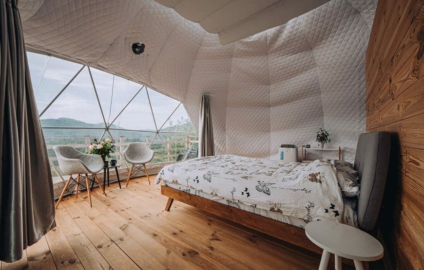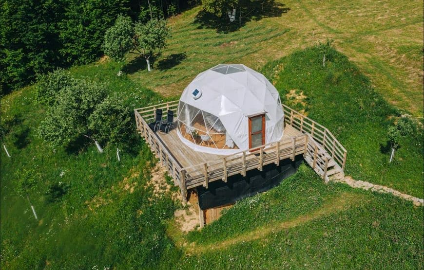 Dome-ul sau luna în care veți înnopta dispune de tot confortul, un pat odihnitor ce lasă la vedere o fereastră panoramică plină cu stele, creste montane, pășuni și păduri. O plăcere să adormiți și să vă treziți în acest decor de poveste.