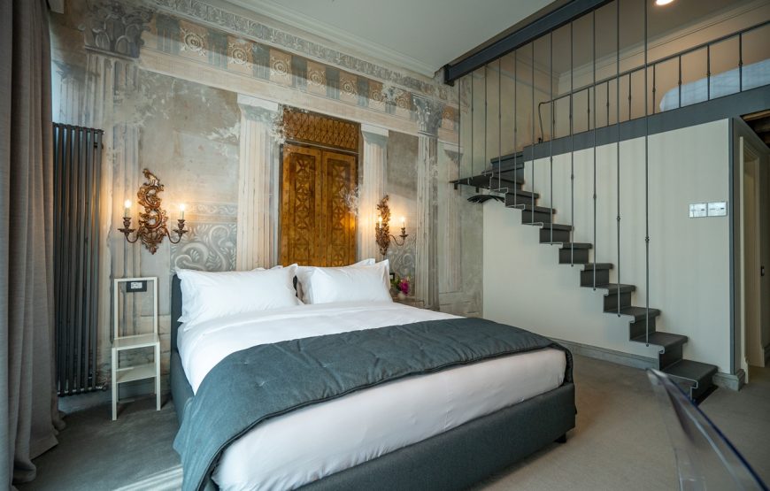 Cărămida clădirii este originală, iar când deschideți ușa, scara autentică din marmură și holul vă transpun într-un vis. Parcă ați vrea să stați doar acolo, să simțiți locul și să faceți poze nesfârșite. Urcând pe scări, se dezvăluie un apartament și șase camere. Interiorul este impozant, pozele vorbesc de la sine. Alegeți camera pentru escapada voastră.