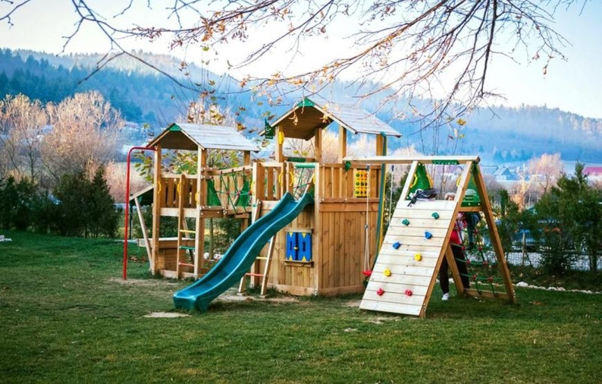 Complexul este învăluit de liniște, fiind situat într-o zonă intimă, unde doar munții împăduriți, cerul și pârâul Holbus sunt vecini.
