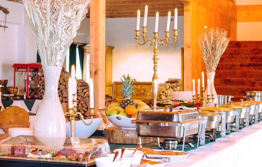 Papilele gustative vă vor fi și ele răsfățate de bucate tradiționale, precum pâine de casă coaptă pe vatră, gemuri de casă, platouri cu slănină, cârnați, tobă, telemea, murături, zacuscă, iahnie de fasole, ciorbe țărănesti si multe alte delicatese romanesti. De asemenea, meniul cuprinde și preparate internaționale, astfel fiecare pofticios are prilejul să își îndeplinească dorințele.